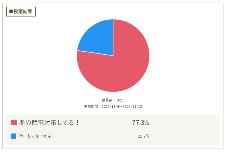 サンケイリビング新聞社では、全国のリビングWeb読者を対象に「冬の節電行動」に関するアンケートを実施。1,021件の投票と515件の自由回答から、生活者が「何に困り」「何を選び」「何を優先しているのか」を読み解きました。