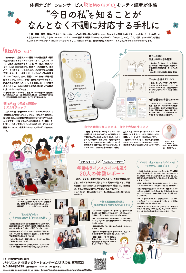 株式会社サンケイリビング新聞社(以下、サンケイリビング新聞社)が発行するオフィス配布フリーペーパー「シティリビング」は、体調ナビゲーションサービスRizMoを展開するパナソニック株式会社と共同で、働く女性の健康課題解決に向けた共同プロジェクト「シティリビング × RizMoアンバサダー」を実施しました。