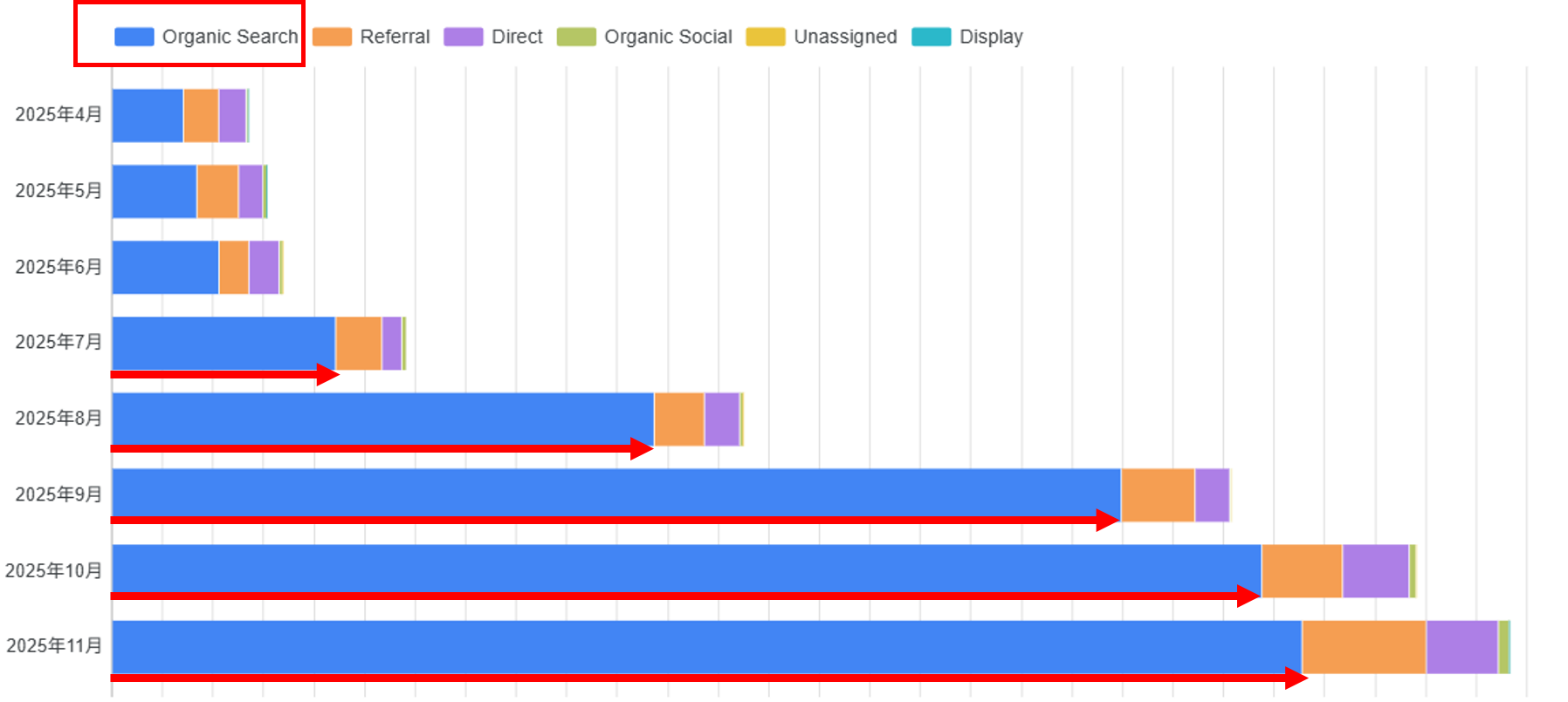 広告依存ではなく、コンテンツ品質の向上のみで伸びた点が大きな特徴です。